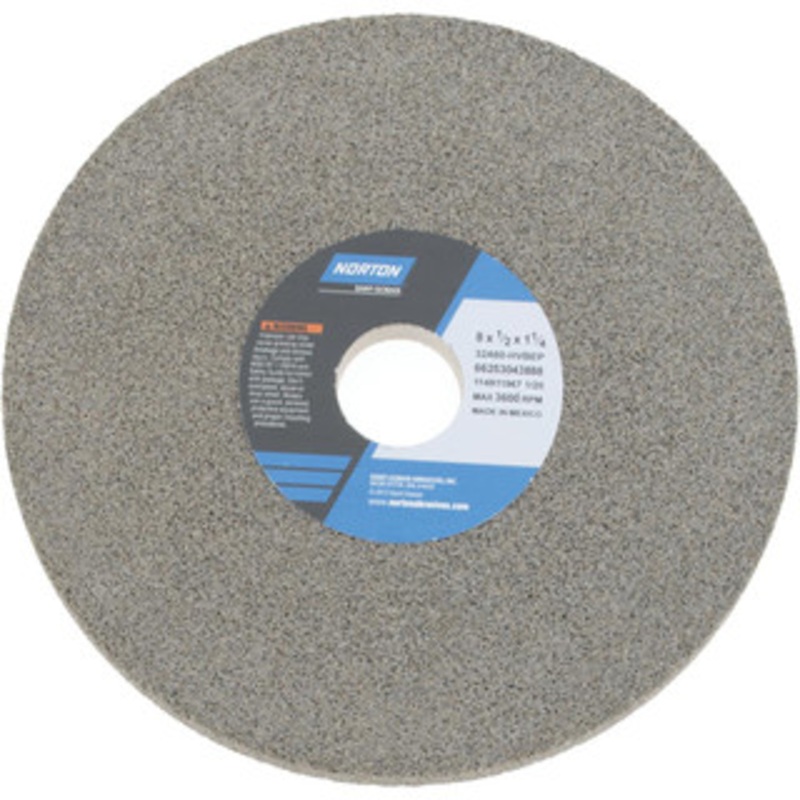Norton 8 Diam x 1-1/4 Hole x 1/2 Thick, H Hardness, 60 Grit Surface Grinding Wheel Aluminum Oxide, Type 1, Medium Grade, 3,600 Max RPM, Vitrified Bond, No Recess 66253043888 – 94187721