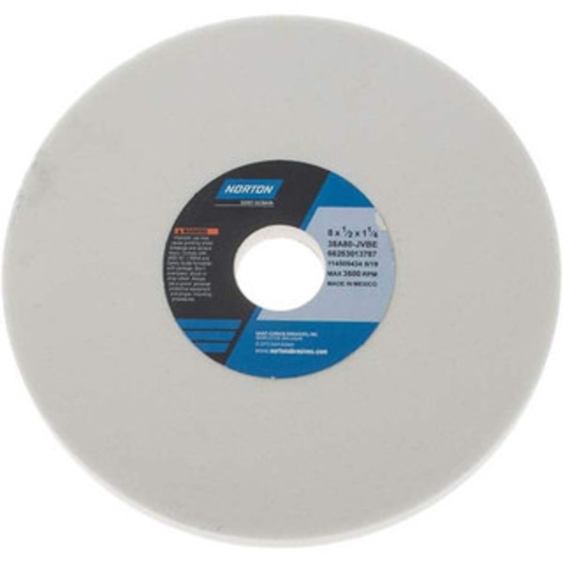Norton 8" Diam x 1-1/4" Hole x 1/2" Thick, J Hardness, 80 Grit Surface Grinding Wheel Aluminum Oxide, Type 1, Medium Grade, 3,600 Max RPM, Vitrified Bond, No RecessManufacturer Part #: 66253013787S/N: 03359288UNSPSC: 23131503UPC: 662530137870(Minimum Order