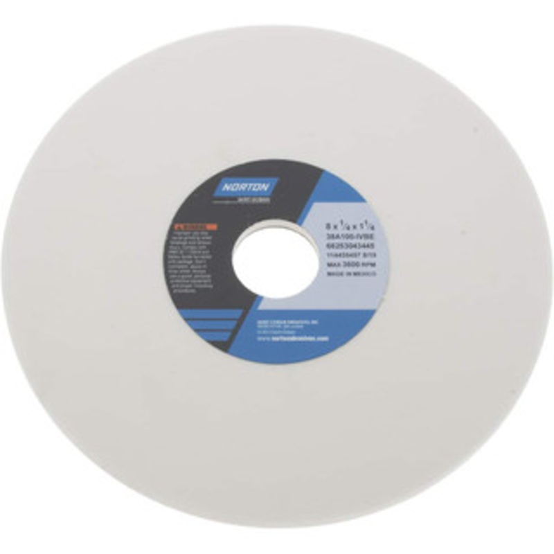 Norton 8 Diam x 1-1/4 Hole x 1/4 Thick, I Hardness, 100 Grit Surface Grinding Wheel Aluminum Oxide, Type 1, Fine Grade, 3,600 Max RPM, Vitrified Bond, No Recess 66253043445 – 05975925
