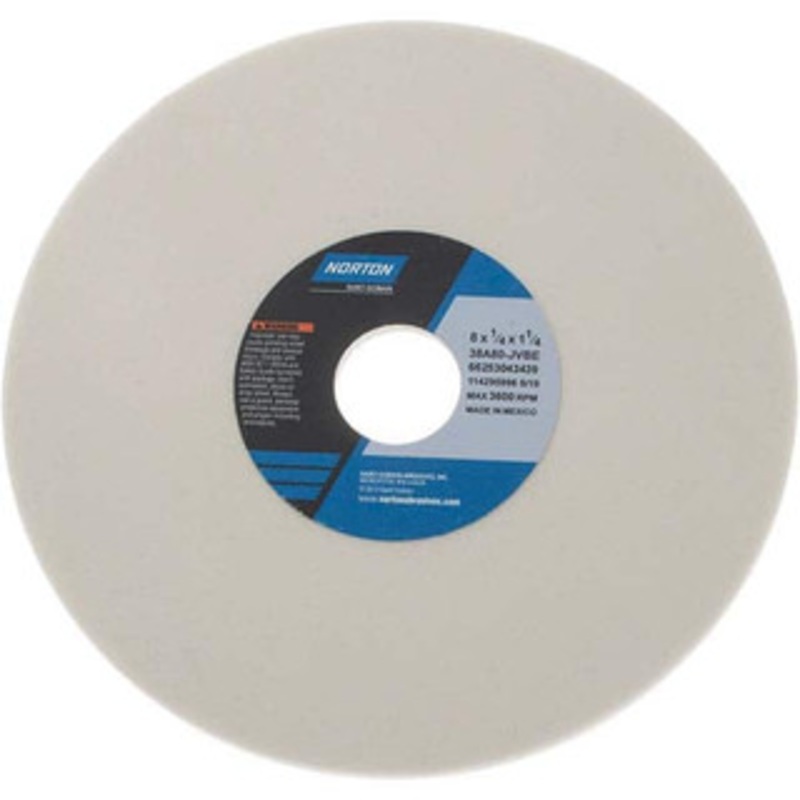 Norton 8 Diam x 1-1/4 Hole x 1/4 Thick, J Hardness, 80 Grit Surface Grinding Wheel Aluminum Oxide, Type 1, Medium Grade, 3,600 Max RPM, Vitrified Bond, No Recess 66253043439 – 01056811