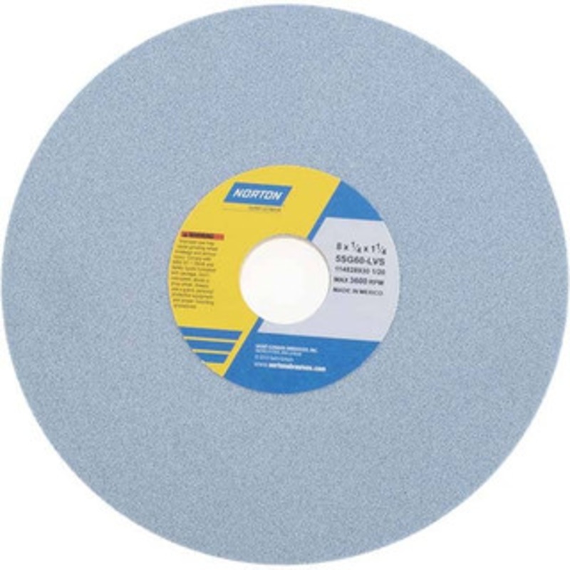 Norton 8 Diam x 1-1/4 Hole x 1/4 Thick, L Hardness, 60 Grit Surface Grinding Wheel Ceramic, Type 1, Medium Grade, 3,600 Max RPM, Vitrified Bond, No Recess 66253043352 – 97585707