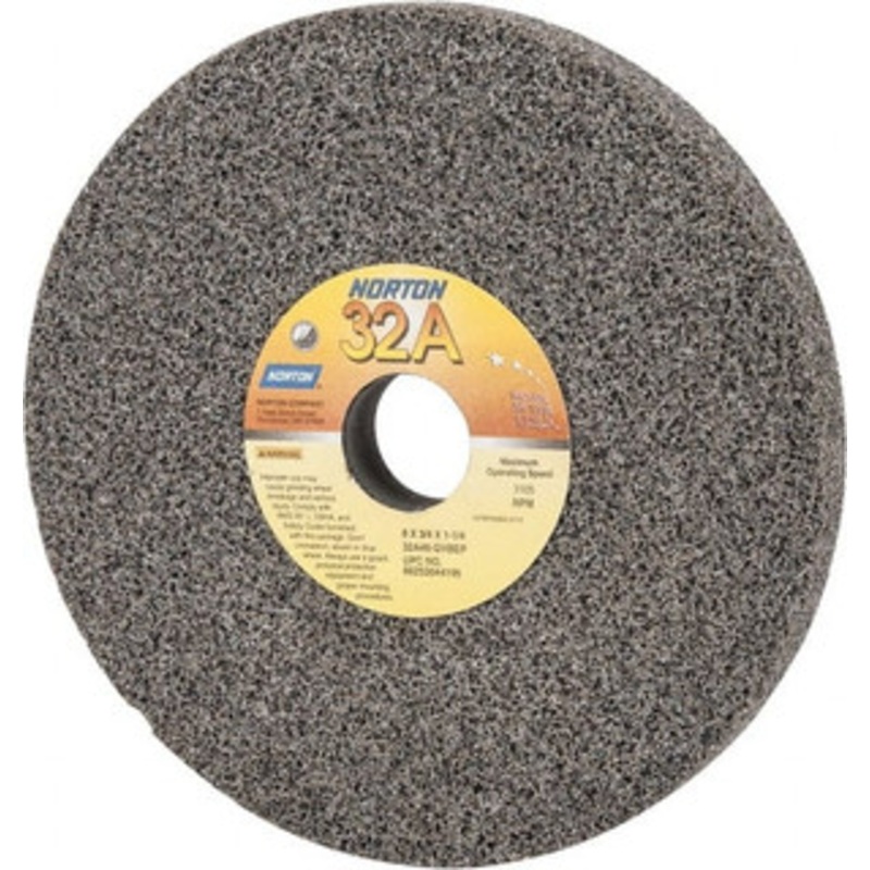 Norton 8 Diam x 1-1/4 Hole x 3/4 Thick, G Hardness, 46 Grit Surface Grinding Wheel Aluminum Oxide, Type 1, Coarse Grade, 3,105 Max RPM, Vitrified Bond, No Recess 66253044195 – 05977012
