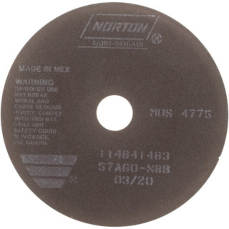 Norton 8 x 1/32, 1-1/4" Hole 60 Grit Aluminum Oxide Cutoff Wheel Medium Grade, 4,775 Max RPM, Use with Stationary ToolsManufacturer Part #: 66253022694S/N: 70502471UNSPSC: 23131503UPC: 662530226949(Minimum Order Quantity=1, Package Quantity=1)Specification