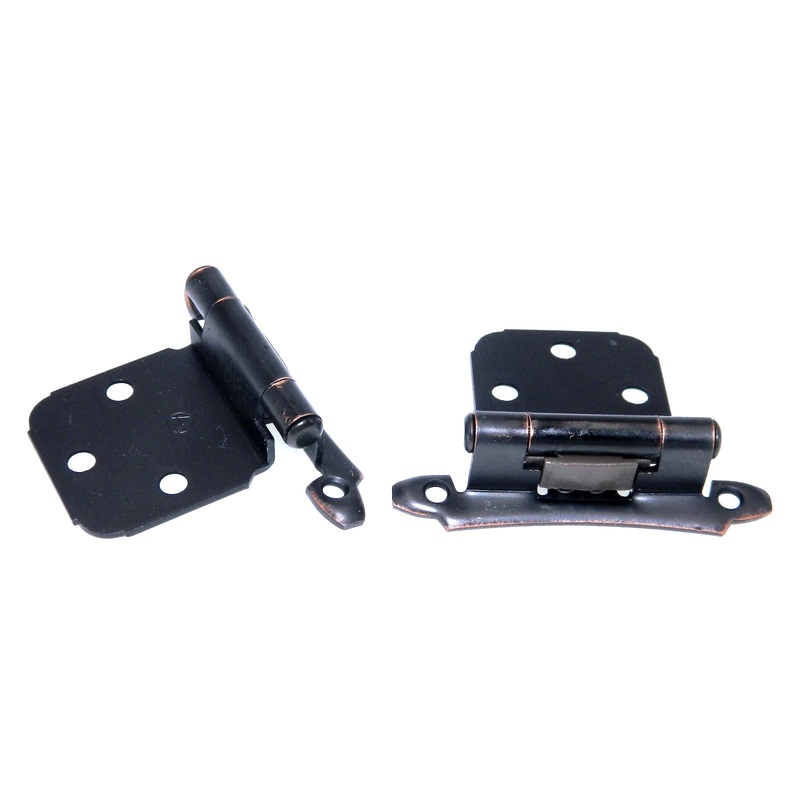 Set of 2 Amerock Oil-Rubbed Bronze decorative flush variable overlay face mount self-closing cabinet hinges, model BP7929-ORB. This product does not come with the manufacturer warranty.Amerock Imperia Decorative HingeOil-Rubbed Bronze finishFlush variable