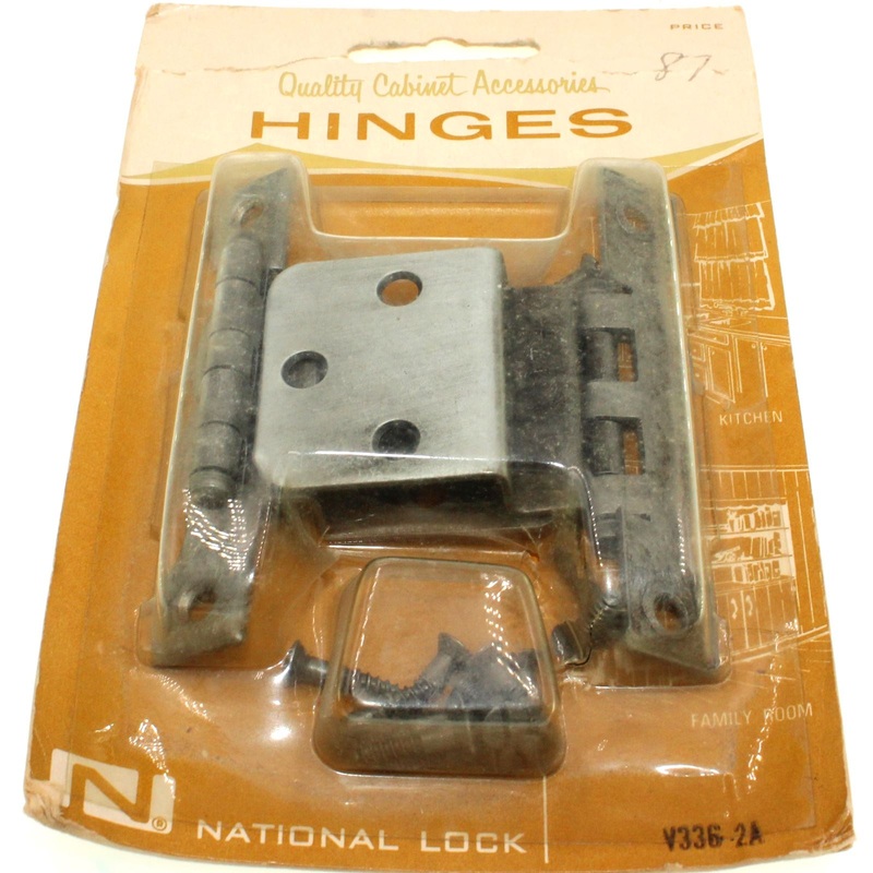 Set of Old Iron 3/8" inset cabinet hinges, model V336-2A from National Lock's Valley Forge collection. This is new old stock.National Lock Valley Forge 3/8" inset hinges V336-2AOld Iron finish, steel materialsFace Mount with decorative wing for 3/8" inset