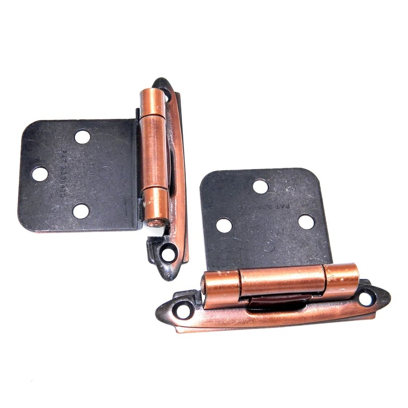 Set of 2 Amerock Semi-Concealed Satin Copper face mount flush variable overlay, self-closing cabinet hinges, model BP7629-41. This product is New Old Stock and does not come with the manufacturer warranty.Amerock Semi-Concealed HingeSatin Copper finishFlus