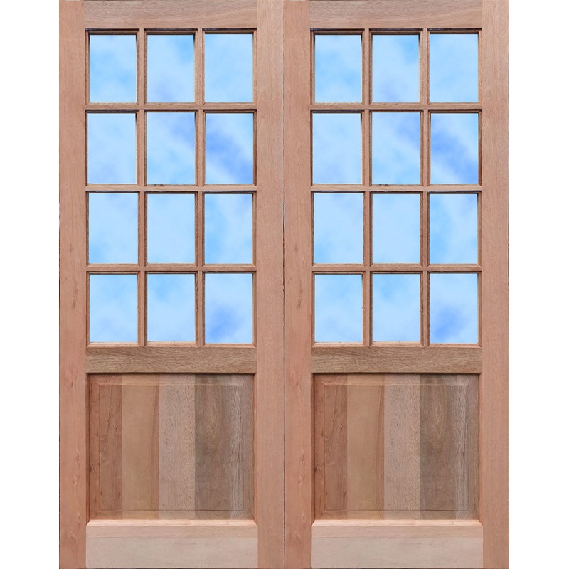 Pair of 1613 X 2032 Strongwood Top Panel Bottom doors with Solid Steel Bars encased inside the cottage pane barsFeaturesSolid Steel incased inside the timber cottage pane bars for additional securityMeranti Raised & Fielded Panel BottomDoor is supplied wit
