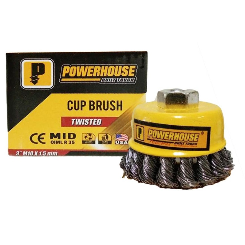 Powerhouse Cup Brush TwistedFor scraping paintRemoving RustUse gloves when using for safety SizePriceM10 X 1.25mm130.00M10 X 1.50mm130.00M14 X 2mm X 4"185.00M16 X 2mm185.00