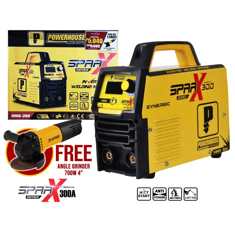 Powerhouse SPARX MMA-300 DC Type Inverter Welding Machine 300A [Synergic] with Powerhouse Angle Grinder 4″