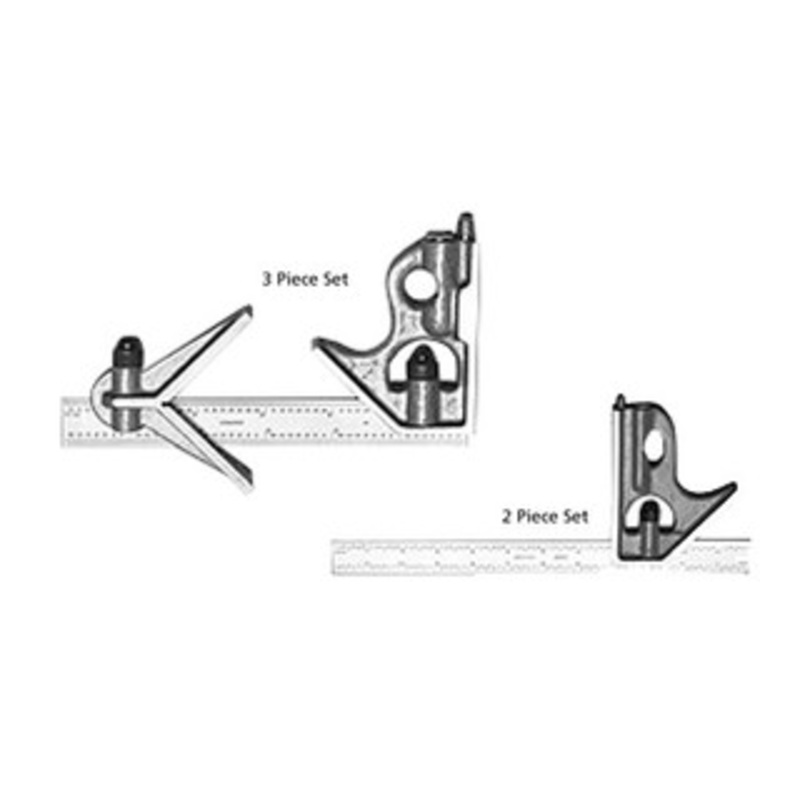 Square head has level and scriber point. Finished in baked enamel. Double-indexed protractor is graduated 180 in both directions. Micro-fine blade graduation. Easy to read satin chrome finished blades.