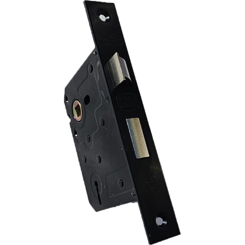 Introducing the QS5757/BL, a robust and stylish locking solution that is SABS approved. This lock features a 3 lever mechanism, providing a balance of security and ease of use. With 57mm backset and 57mm centres, it fits seamlessly into a variety of door d