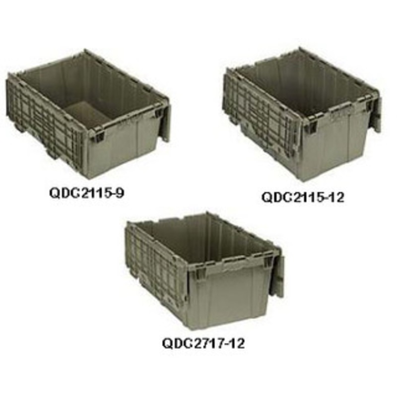 - Attached tops are permanently attached with steel hinges that interlock securely for stacking strength.