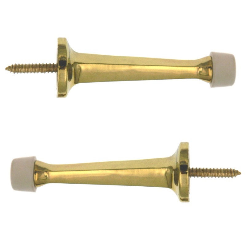 Prevent damage to your walls and doors with these doorstops from Warwick Fine Hardware. Each doorstop screws into the baseboard and comes with a non-marking rubber bumper. Sold in Pairs.Polished Brass Finish with Non-marking TipBaseboard Mounted Rigid Heav