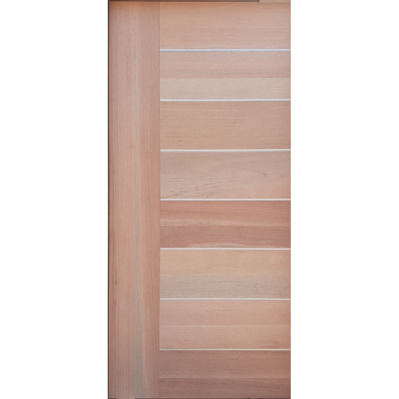 1200W X 2032H Semi SolidHorizontal SlattedPivot Doorwith Aluminium Inserts. Made from solid meranti 12mm thick slats and a centre skeleton with 2 concealed edges.FeaturesAluminium inserts inbetween timber horizontal slats44mm thick Door1 Year Guarantee.Doo