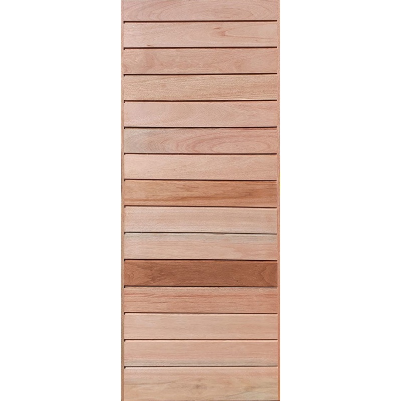 Semi SolidHorizontal Slatted Door,Made with 10mm thick solid Meranti slats and a centre 24mm Meranti frame with 2 Meranti Vertical edges.FeaturesHeavy Duty DoorDoor weight +- 38 kilograms1 Year Guarantee.Kiln Dried Meranti TimberSolid Meranti SlatsMeranti