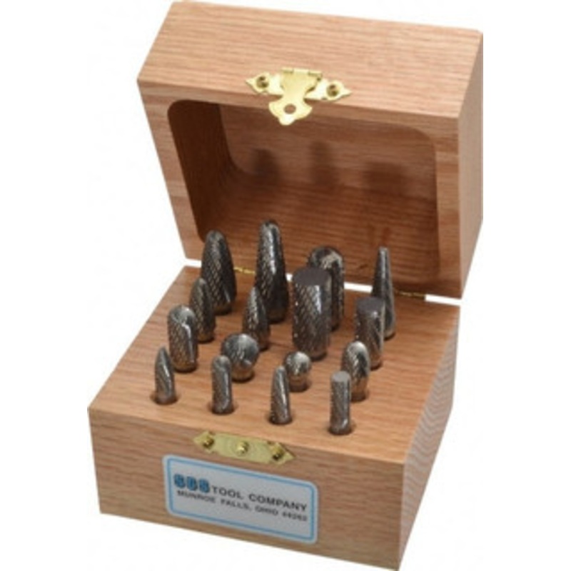 SGSPRO 16 Piece, 1/4" Shank Burr Set Tungsten CarbideManufacturer Part #: 18217S/N: 01400712UNSPSC: 27112809(Minimum Order Quantity=1, Package Quantity=1)Specifications:Tooth StyleDoubleHead MaterialTungsten CarbideShank Diameter (Inch)1/4Industry Specific