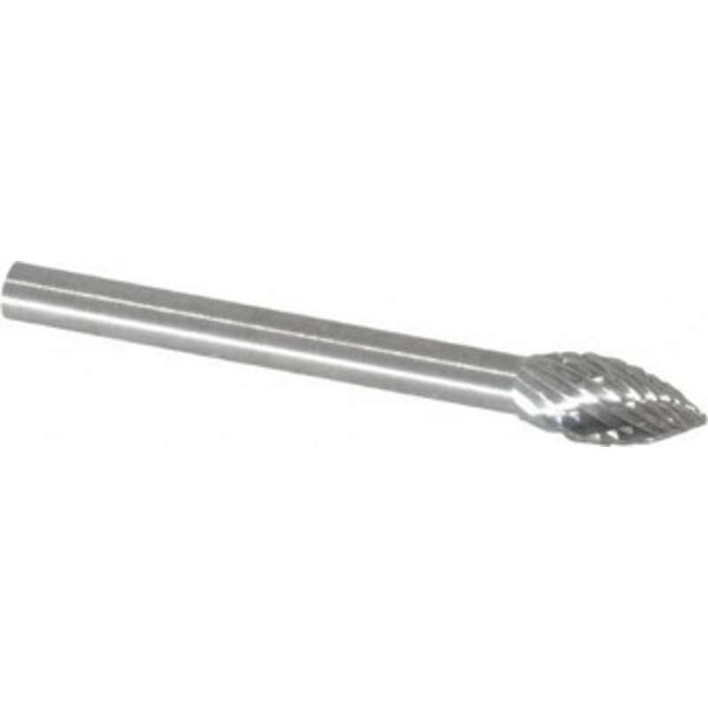 SGSPRO 3/16 Cut Diam, 1/8 Shank Diam, Carbide Double Cut Flame Burr Radius End, 3/8 LOC 14603 – 05293501