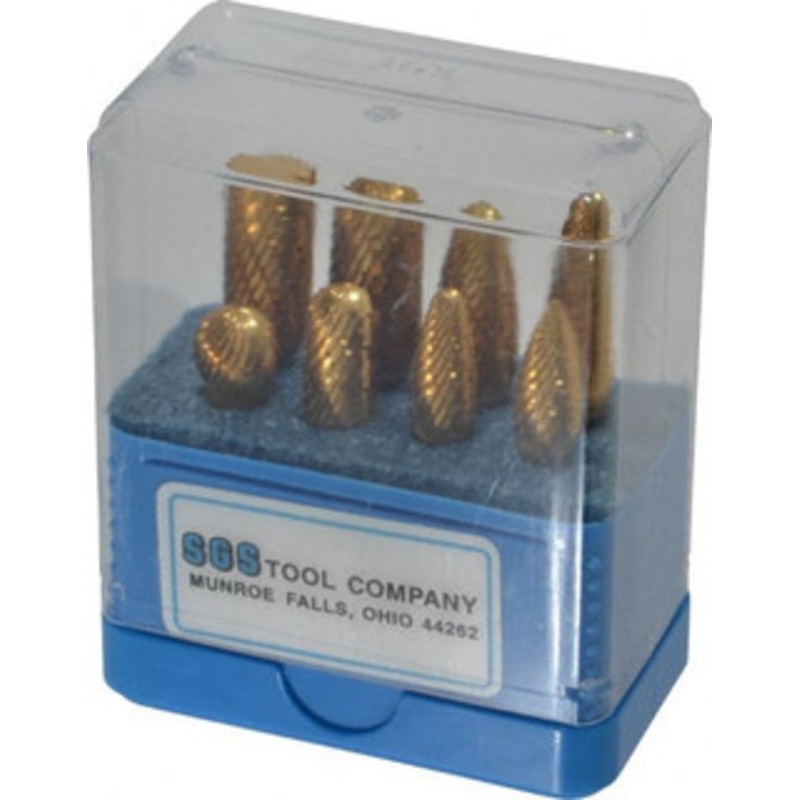 SGSPRO 8 Piece, 1/4" Shank Burr Set Tungsten Carbide, Multiple Head Shapes, 14 Included AngleManufacturer Part #: BUR-06TNDCS/N: 01400753UNSPSC: 27112809(Minimum Order Quantity=1, Package Quantity=1)Specifications:Head Shape(2) Cylinder with Radius End, Cy
