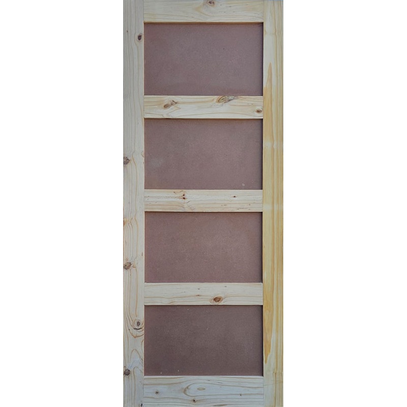 813 X 2032 4 Panel Horizontal Shaker Pine & Supawood DoorTraditional Style & Rail ConstructionPine Styles & Rails4 X 9mm thick Supawood Shaker PanelsDoor is supplied raw - not paintedInterior Door, Interior Doors >> Supawood (MDF)