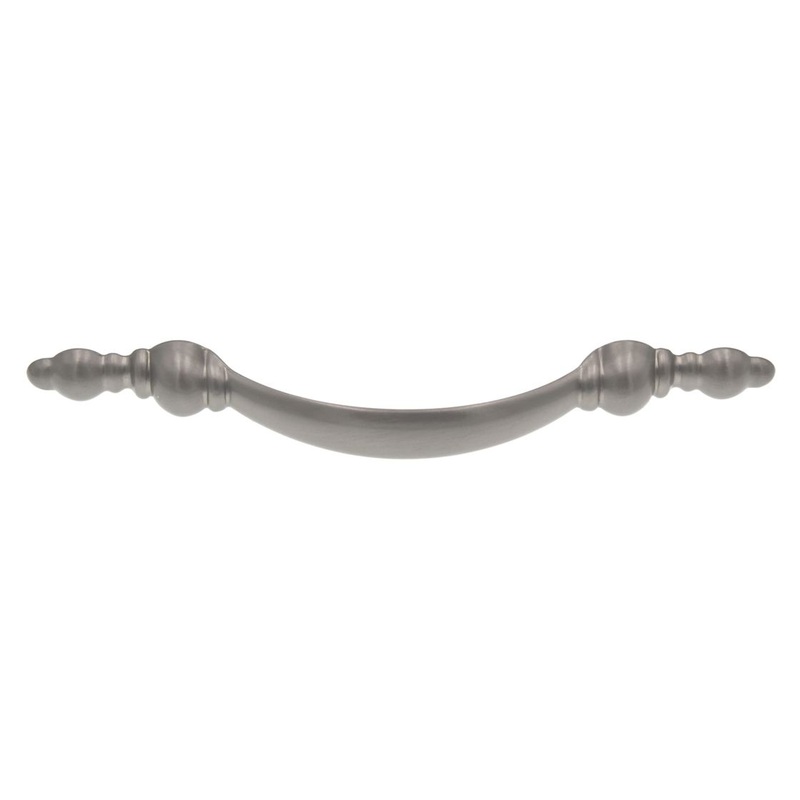 Burnished Satin Nickel 3" Screw Spacing Arch Cabinet Handle Pulls P2371-BN from Showcase HardwareAdd style to your cabinets and furnitureBurnished Satin Nickel finishDurable Zinc constructionCenter to Center Screw Spacing: 3"Dimensions: 5" x 1/2" x 7/8"