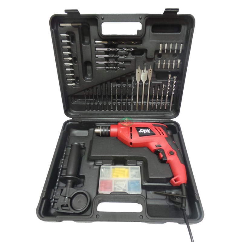 Skil 6610 10mm Impact Drill w/ 50pcs AccessoriesFeel the light weight in your gripEasy handling with its super compact designSuper robustness and durabilityErgonomic Design of soft grip for comfortable operationPre-selection switch and variable speed for o
