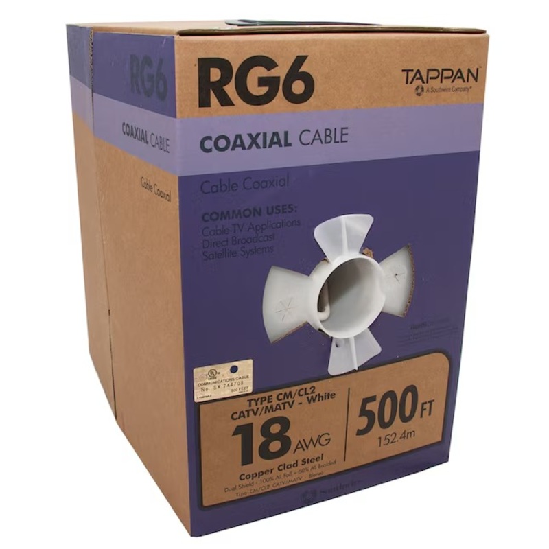 Southwire 56918341 500-ft 18 RG6 White Coaxial Cable ( By-the-roll )For audio/video, radio frequency and closed-circuit transmission applicationsCan be used indoors and outdoors for audio/video applicationsAlso used in computer/data processingFlame retarda