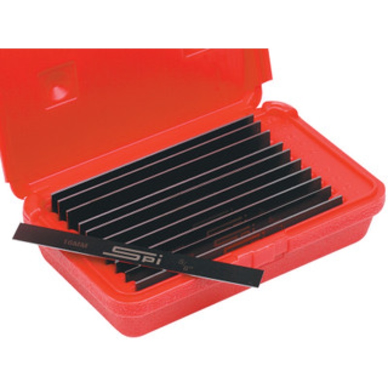 SPI 10 Pair 1/32" Thin Parallel Set - 98-417-9 Features: 6" Length Parallel heights 1/2" thru 1x5/8" in 1/8" increments Hardness 50RC. Parallelism within 0.0002" within each pair Absolute Heights are nominal Furnished in fitted case