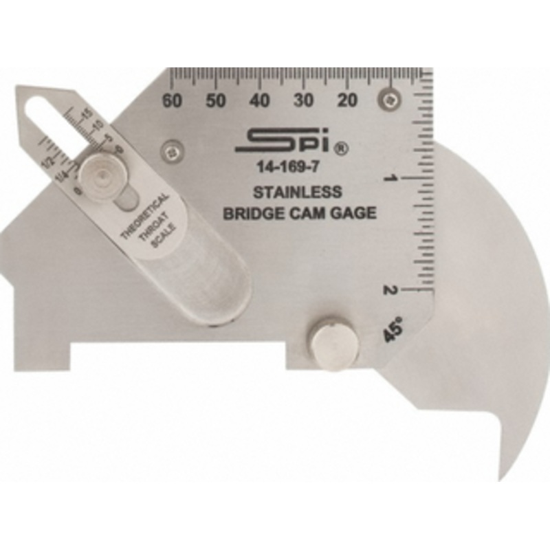 SPI Bridge Cam Welding Gage - 14-169-7 This versatile cam-type weld gage can be used for checking surfaces, angles, depths, etc.Features: Can measure fit-up bevels, weld reinforcement, fillet weld leg length, undercuts and pits, throat of fillet weld, angl
