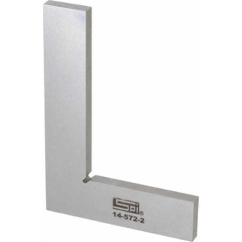 SPI Hardened Steel Square, 3-1/8" Blade - 14-572-2 Accuracy Class 2 with Straight Edge Hardened to RC 55 Base and blades are accurately ground and lapped Beam is grooved at inner corner 3-1/8 Inch Long Blade 2 Inch Long Base 0.0011 Inch Accuracy Steel Squa