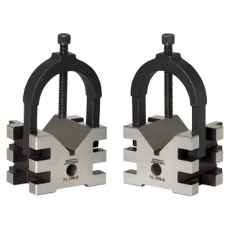 SPI Matched V-Blocks - 91-298-0 Length: 2-3/8" Width: 2-3/4" Height: 2" Hardened steel. All sides of V-Blocks precision ground parallel and square within 0.0002. Use for layout work in tool room. Blocks have capability to hold square or round pieces with g