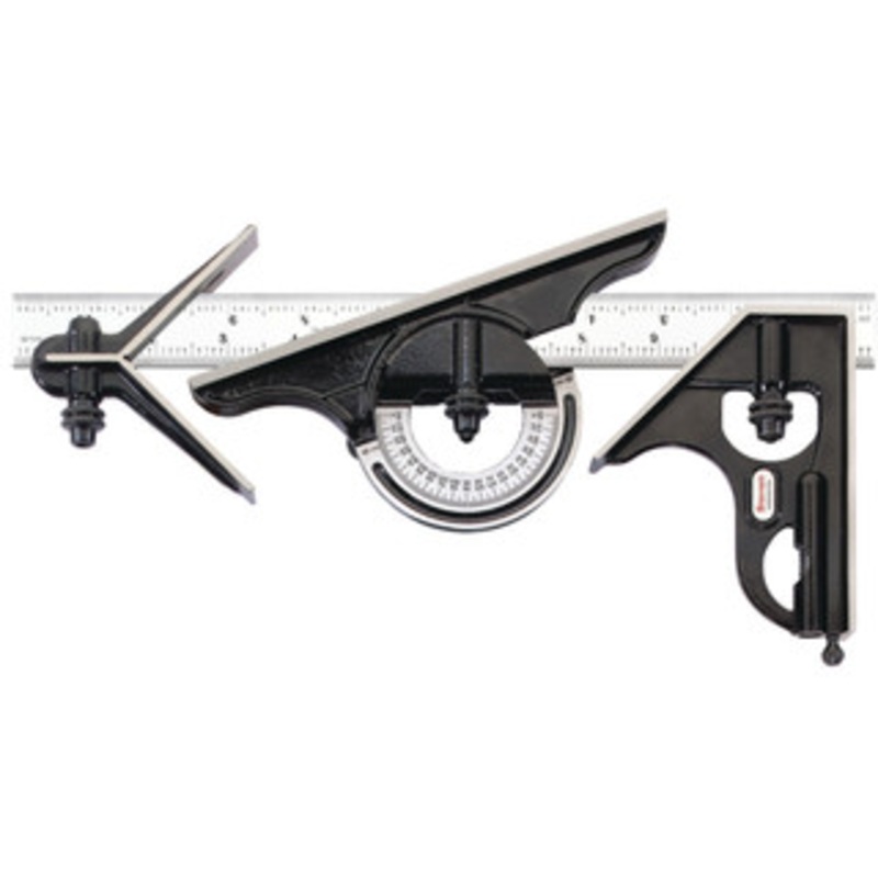 Starrett 12" Combination Set with Square, Center and Reversible Protractor Head and Blade, EDP 51548 - C434-12-4R The Starrett 12" Combination Set with Square, Center and Reversible Protractor Head and Blade includes a reversible lock bolt, scriber, spirit