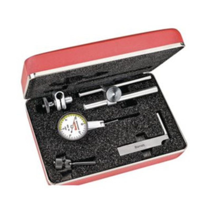 The Starrett 709 Dial Test Indicator with Dovetail Mount offers an easy to read angled head and the flexibility of three dovetail mounts. White Dial, .030 Range, .0005 Grad, with Attachments.