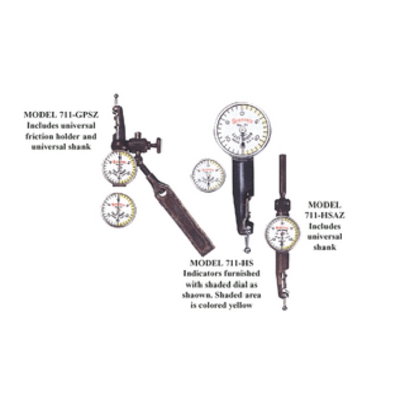 For precise indicating in machining, layout and inspection. Jewelled lever for extra smooth indicator action. Reversible action. Swiveling tubular body. Hard chrome-plated ratchet contact point. Shaded dial for jig-borer use.