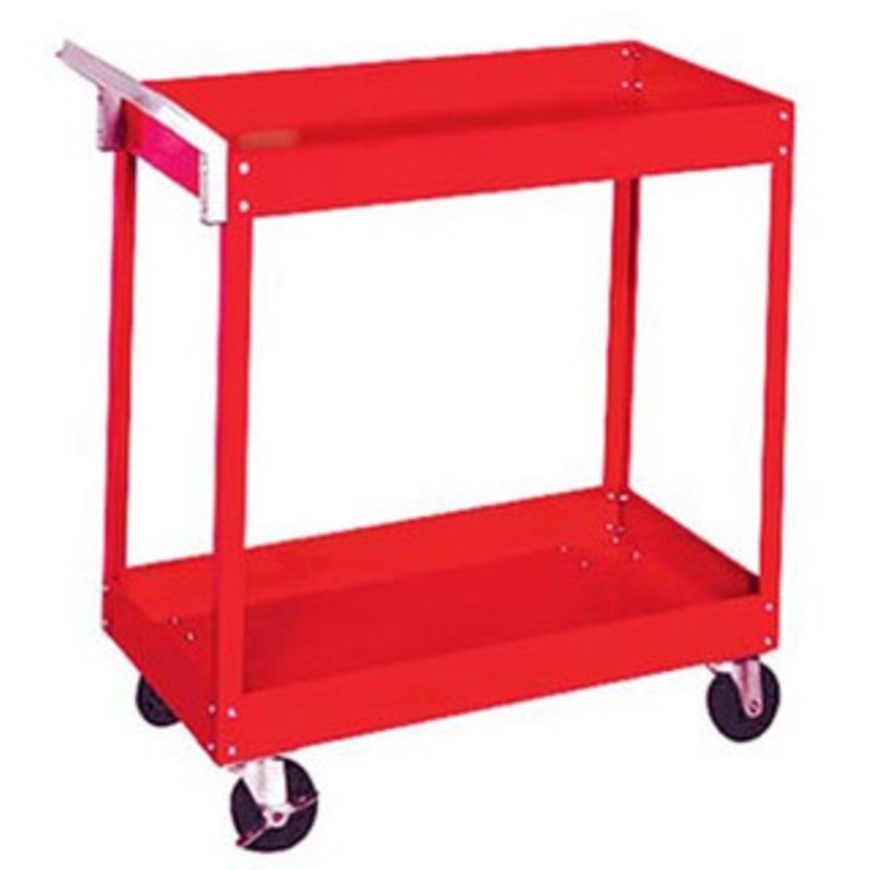 SUNEX Economy Service Cart Features: Large, easy to maneuver 4" wheels: 2 locking and 2 standard Durable powder coated finish 3" Deep shelves (30" long x 16" wide) Easily outfit the new economy service cart with a locking drawer (8006RB) and/or a locking s