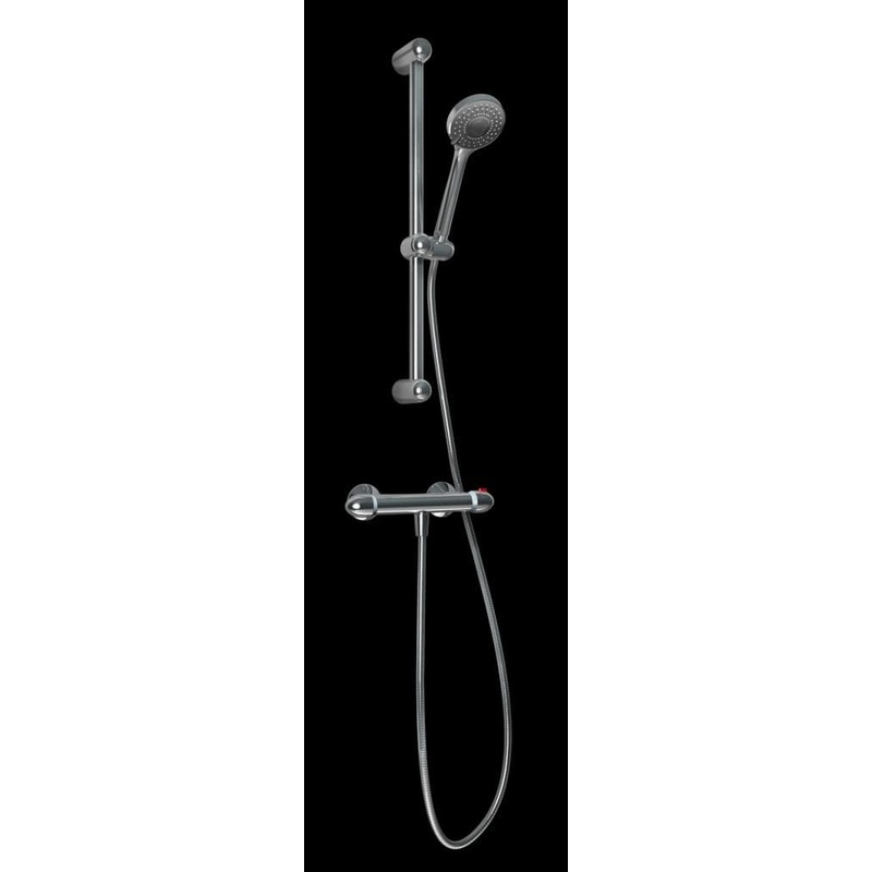 Bar mixer with brass thermostatic valveChrome plated stainless steel railsStainless steel hoseSeparate flow and temperature controlsSuitable for high and low water pressure10 Year Guarantee
