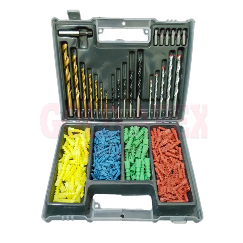 300 pcsCombination of drill bits for Concrete, Wood, and Metal, magnetic holder, screwdriver bits & plastic tox