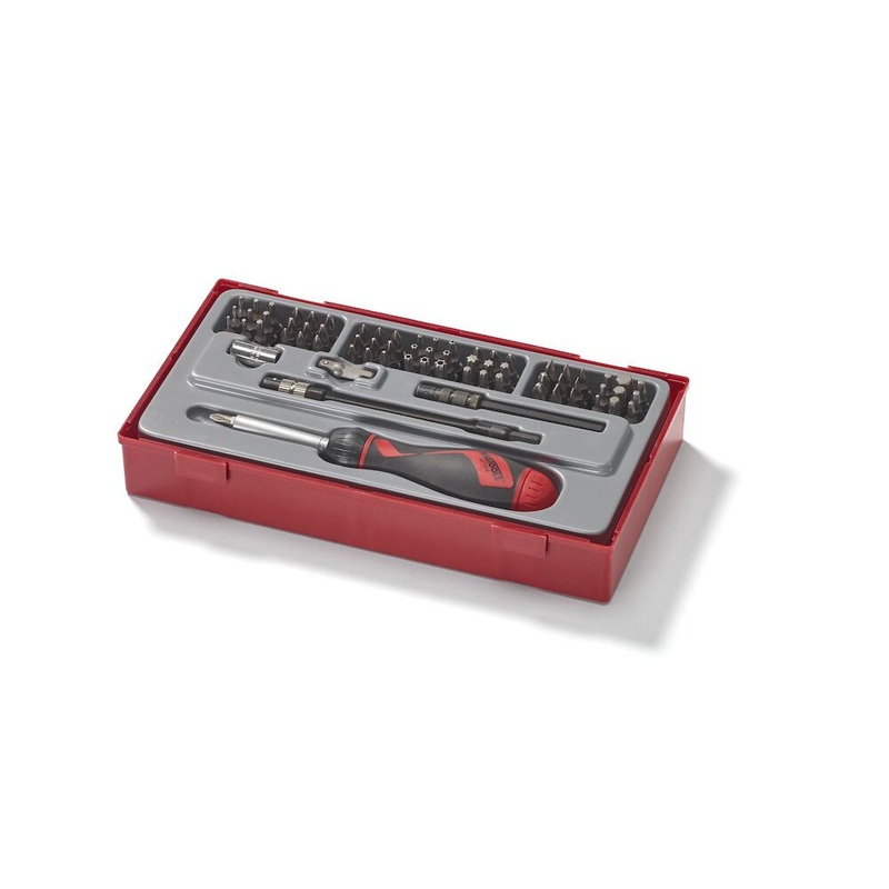 An extensive range of 1/4" hex drive 25mm screwdriver bitsReversible,magnetic, ratcheting bits driver, extension bars and adaptors included Removable lid and dove tail jointsOrganised in a tool tray module size 1 (TT1)SpecificationsProduct Type : Bits & Dr