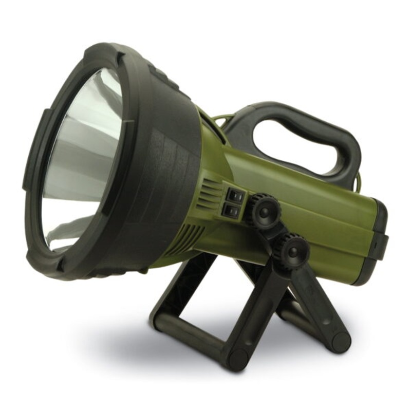 THOR X Colossus 18 Mil Candle WattMULTI-PURPOSE SPOTLIGHT The Cyclops Thor X Colossus offers convenient lighting when you need it. Use it when youre working on a construction project in a dark area, for theater productions or whenever you need powerful illuminationRECHARGEABLE The rechargeable battery gets complete charges in 20 hours for reuse. With a peak intensity of 18 million candelas, the spotlight provides great light output thats ideal for outdoor remote construction or repair operationsBURN TIME This Cyclops Colossus spotlight offers 20 minutes of spotlight and 33 minutes of dim-light burn times. The rechargeable spotlight comes with 130/100 W power rated Philips H4 halo gen bulb LEDs to illuminate large areas perfectlyFEATURES This spotlight gets energized by two 6-volt sealed lead acid batteries. It includes two power levels for brightness control. Halogen rechargeable spotlight provides constant light output. 130-watt halogen bulb for superior performanceEASY TO USE Adjustable swivel stands allow for hands-free lighting, allowing you to set it on the floor, table or other flat surface as you work. These stands also enable you to angle the light to just where you need itCan be used while its plugged into the DC charger and cannot be used while plugged into the AC charger with two power levelsDurable rubberized constructionDual recharge, either by AC/DC adapter or 12v DC car plug adaptor (both included)Full run time: 20 minutes; Dim run time: 33 minutes