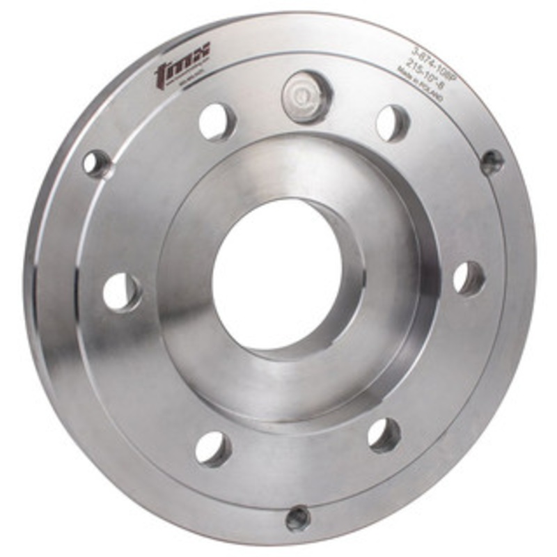 TMX Fully Machined Type A Steel Backplate for SET-TRU Chucks, 5in A2-6 - 3-874-056P Designed to mount on A2 American Standard Spindles Technical Data: For use with Chuck Size 5 in For use with Chuck Type SET-TRU Spindle mount A2-6 Machined Fully Finished W