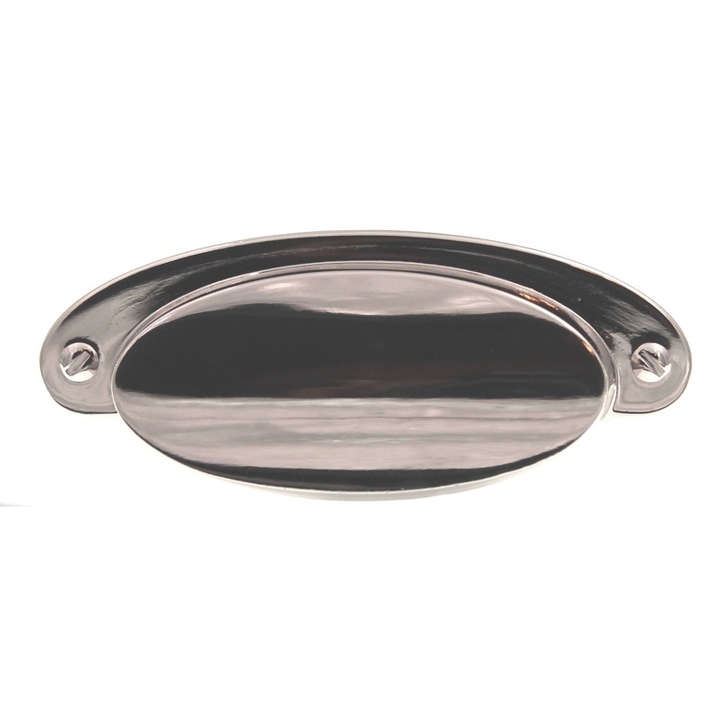 Polished Nickel finish drawer cup pull handle with 2 9/16 inch center screw spacing, model M1299 from Top Knobs's Asbury Dakota collection.Top Knobs Asbury Dakota cup pullPolished Nickel finish, solid zinc alloy materialsFor cabinets and drawersHole center