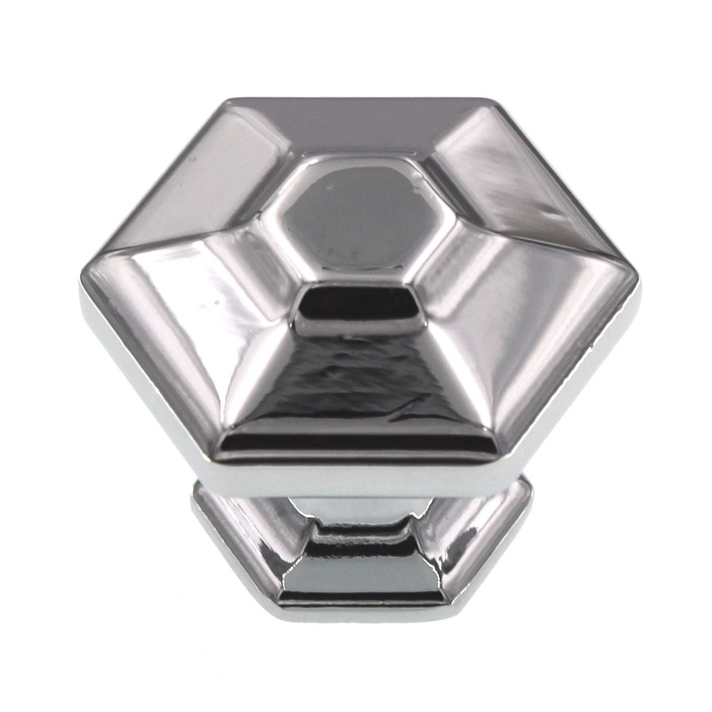 Polished Chrome 1 1/4 inch hexagon cabinet knob, model TK713PC from Top Knobs Transcend Spectrum collection.Top Knobs Transcend Spectrum hexagon knobPolished Chrome finish, zinc alloy materialsMade in ChinaMounting hardware included; M4 screwDimensions: 1