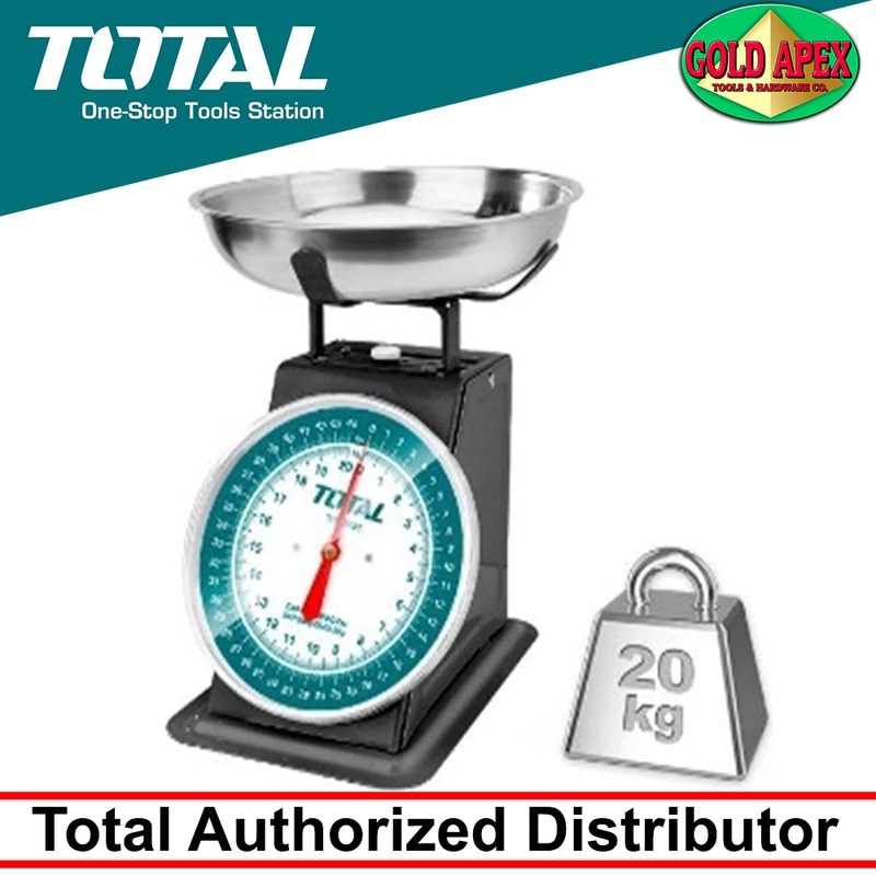 Total TESA5201 Spring Weighing Scale 20kgMax. weight:20kgWith 100g graduationDisplay: Dial plateStainless steel bowlBowl diameter:255mmPacked by color box