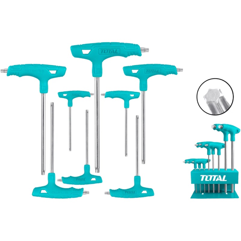 Total THHW80836 8pcs T-handle Torx Wrench Set8 Pcs T-handle torx wrench setSizeT10X75,T15X75,T20X100,T25X100,T30X150,T40X150,T45X200,T50X200MaterialCr-VHeat treatment and chrome plate