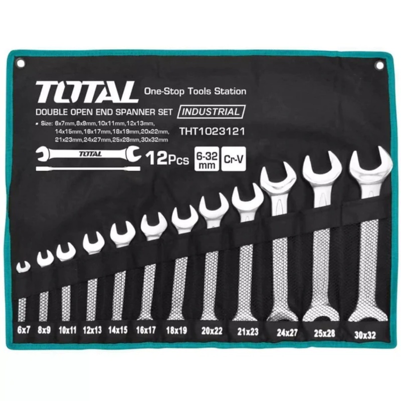 Total THT1023121 Open Wrench Set 6-32mm12pcs double open end sapnner setSize:6-32mm6x7mm,8x9mm,10x11mm,12x13mm,14x15mm,16x17mm,18x19mm,20x22mm,21X23mm,24X27mm,25X28mm,30X32mmFine polished