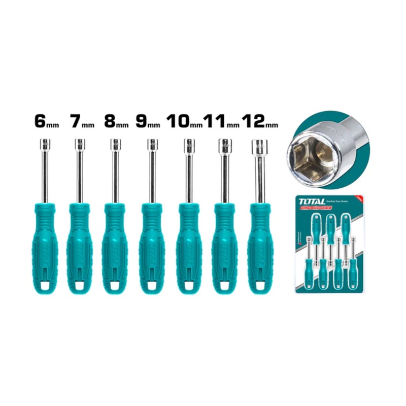 Total TNSS0701 7pcs Nut Driver / Screwdriver Set7Pcs Nut Screwdriver SetNew design handleSize6mm7mm8mm9mm10mm11mm12mmLength:185mm