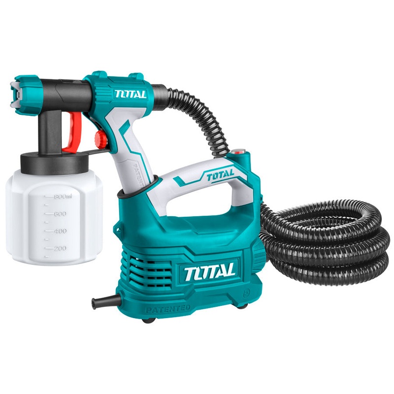 The device works according to low pressure spraying technique. A high volume of air surround the spray jet being ejected under low pressure. The air cap provides a very fine atomization with the lowest of spray mist. The coating material is applied to the object quickly and exactly. Moreover, the airflow shortens the drying time for the coating material. This gives perfect spraying result with a respective saving of coating material and is therefore good for the environment.
