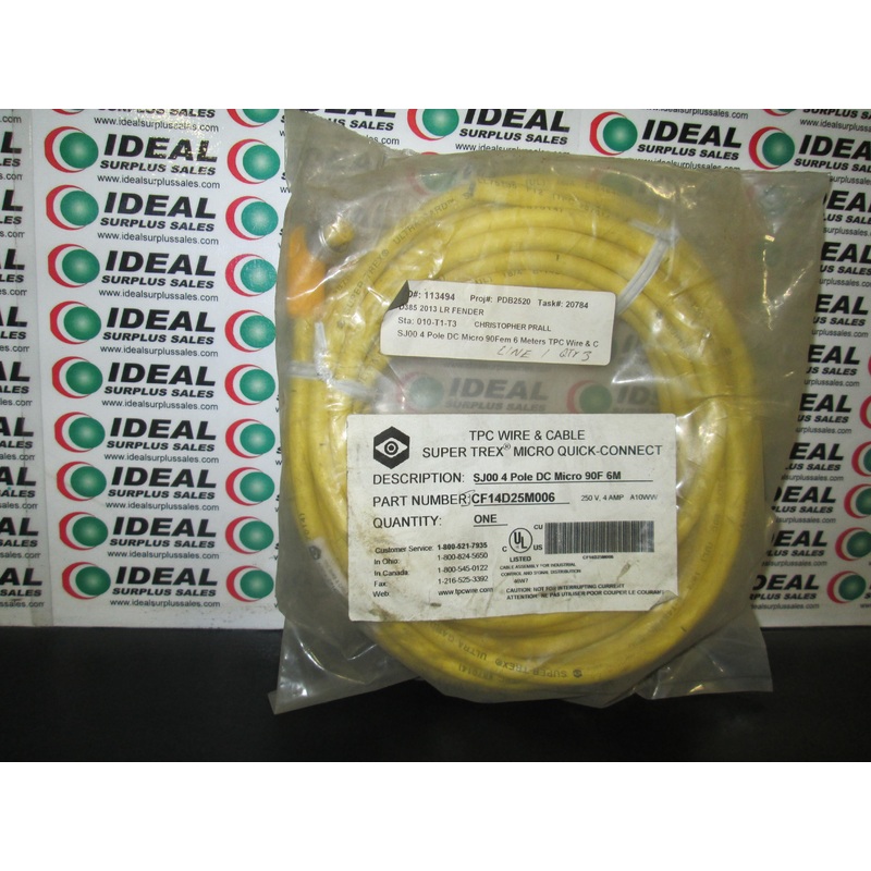 CORDSET, TPC WIRE & CABLE CF14D25M004, SJ00 4P DC MICRO FEMALE 90DEG 6M