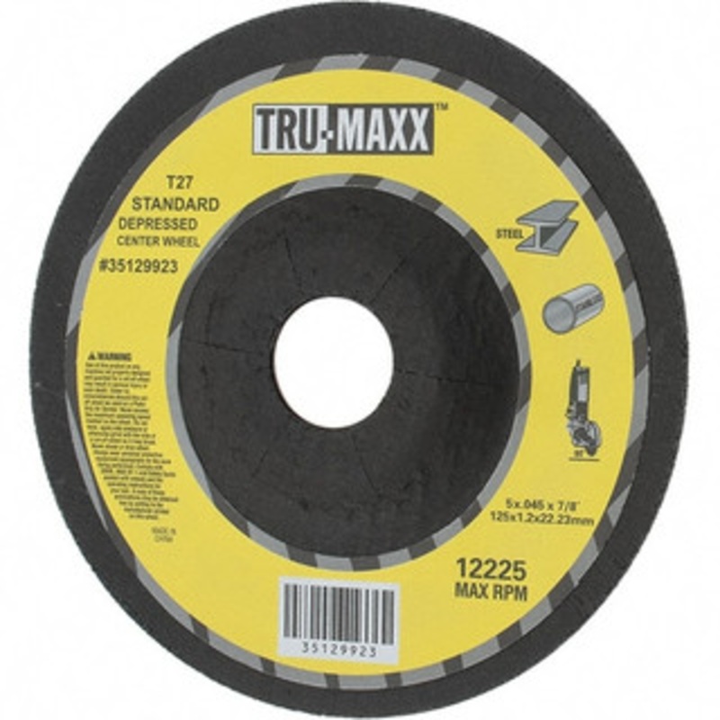 Tru-Maxx 60 Grit, 5" Wheel Diam, 7/8" Arbor Hole, Type 27 Depressed Center Wheel Medium Grade, Aluminum Oxide, R Hardness, Compatible with Angle GrinderManufacturer Part #: 500103-2S/N: 35129923UNSPSC: 23131503(Minimum Order Quantity=1, Package Quantity=1)