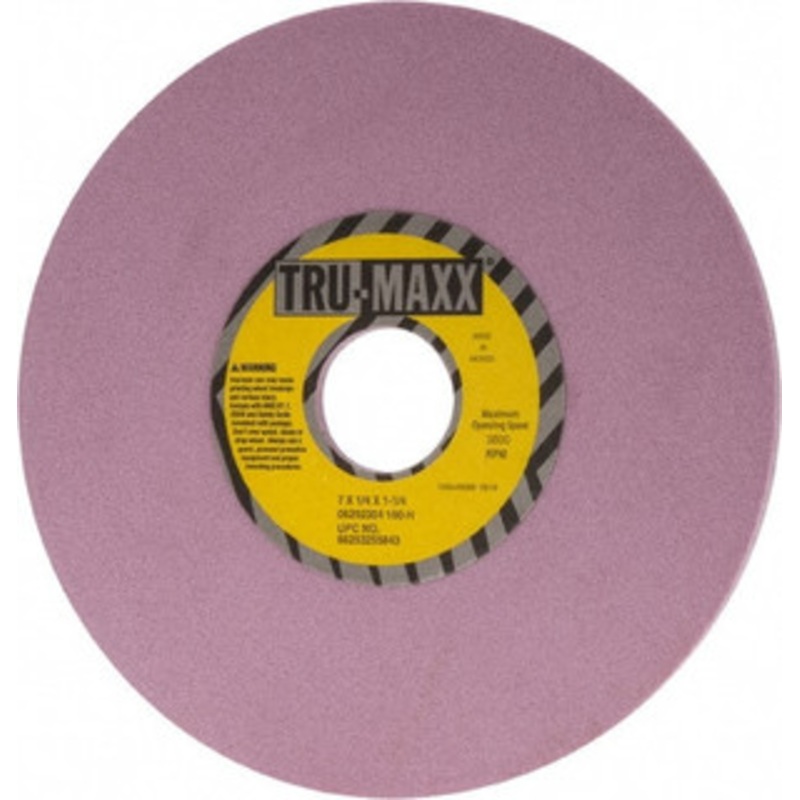 Tru-Maxx 7" Diam x 1-1/4" Hole x 1/4" Thick, H Hardness, 100 Grit Surface Grinding Wheel Aluminum Oxide, Type 1, Fine Grade, 3,600 Max RPM, Vitrified Bond, No RecessManufacturer Part #: 66253255643S/N: 06292304UNSPSC: 23131503(Minimum Order Quantity=1, Pac