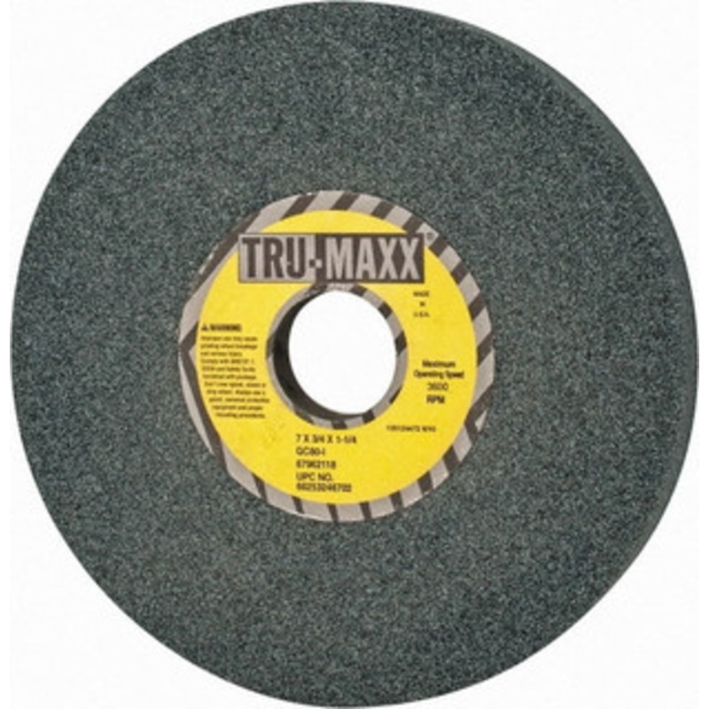 Tru-Maxx 7 Diam x 1-1/4 Hole x 3/4 Thick, I Hardness, 80 Grit Surface Grinding Wheel Silicon Carbide, Type 5, Medium Grade, 3,600 Max RPM, Vitrified Bond, One-Side Recess 66253246702 – 67962118